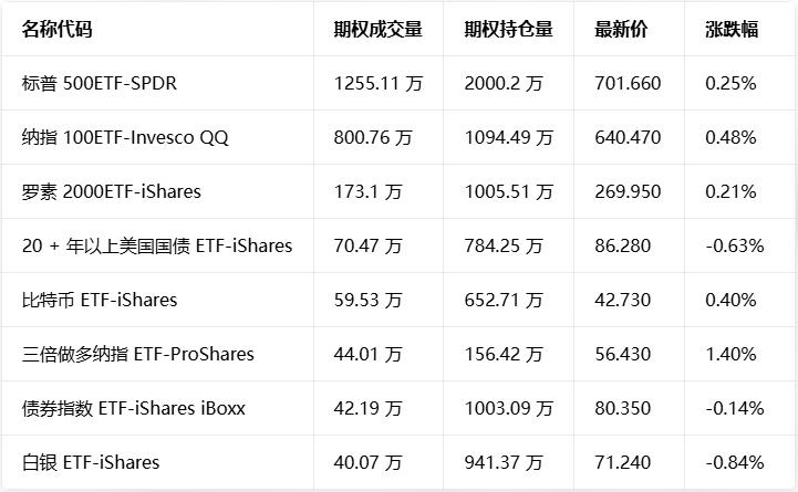 期权成交量前10的股票中,特斯拉的看跌/看涨成交量比最高,达到0.73。特斯拉与SpaceX合资成立Terafab芯片制造企业,积极采购半导体设备。