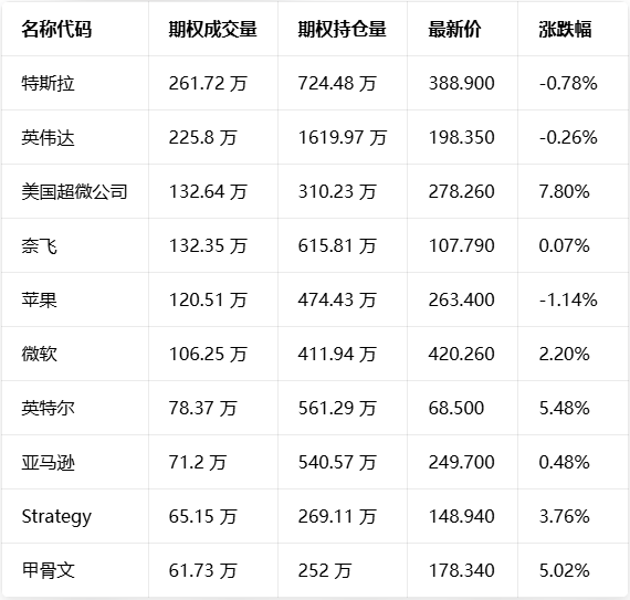 美国超微公司收涨7.80%,成交132.64万份期权合约,看跌/看涨成交量比降至0.49。