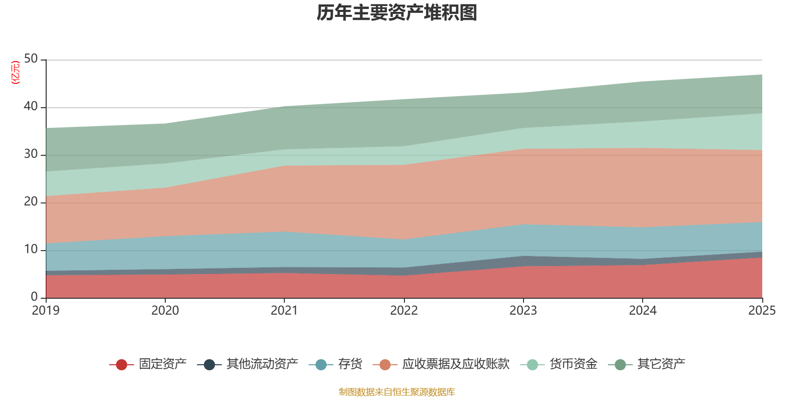 资产重大变化方面,截至2025年末,公司应收票据及应收账款较上年末减少9.28%,占公司总资产比重下降4.46个百分点;货币资金较上年末增加38.17%,占公司总资产比重上升4.16个百分点;固定资产较上年末增加23.21%,占公司总资产比重上升2.92个百分点;交易性金融资产合计较上年末增加190%,占公司总资产比重上升1.59个百分点。