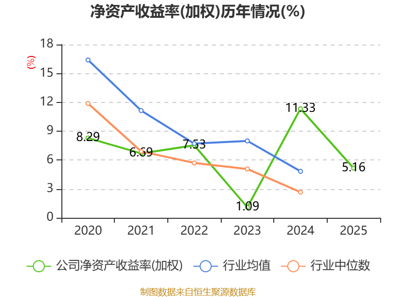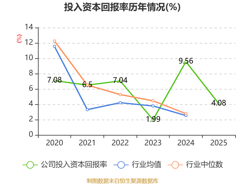 数据显示,2025年公司加权平均净资产收益率为5.16%,较上年同期下降6.17个百分点。公司2025年投入资本回报率为4.08%,较上年同期下降5.48个百分点。