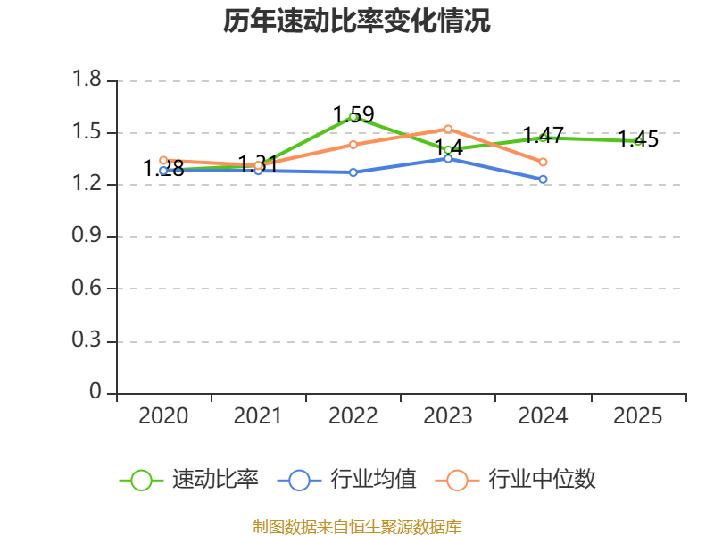 2025年,公司流动比率为1.79,速动比率为1.45。