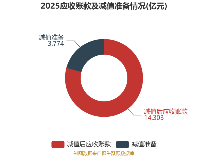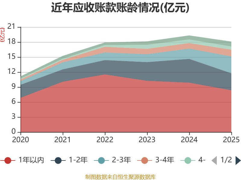 从应收账款账龄结构来看,截至2025年末,公司账龄在1年以内的应收账款余额为8.35亿元,较上年末下降1.51亿元,占应收账款总额比例为46.17%,较上年末下降4.88个百分点。