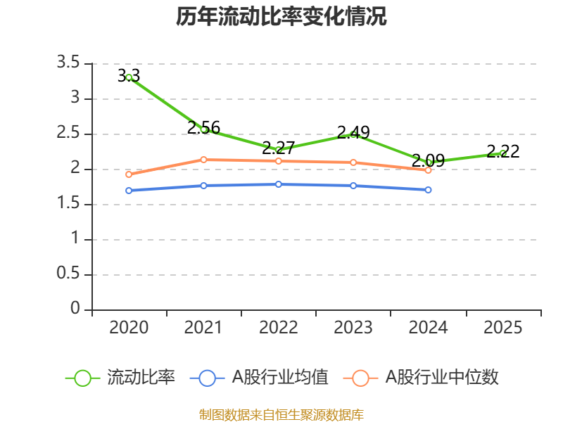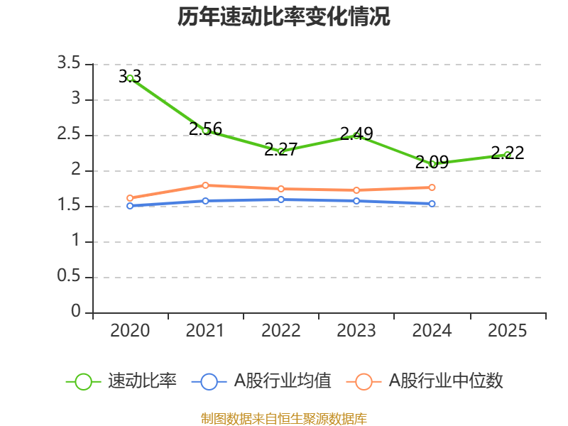 2025年,公司流动比率为2.22,速动比率为2.22。