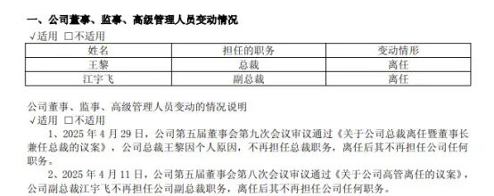 2022年5月13日,朱景炀因个人原因辞职,他曾任公司副总裁兼财务负责人,辞职前持有公司33045股股份,占总股本0.0073%。