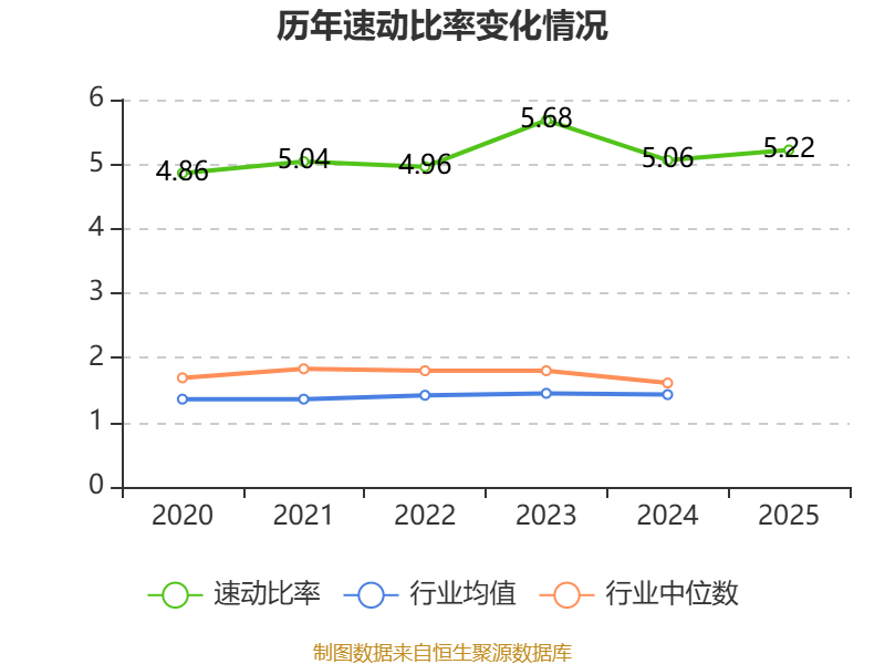 2025年,公司流动比率为5.92,速动比率为5.22。