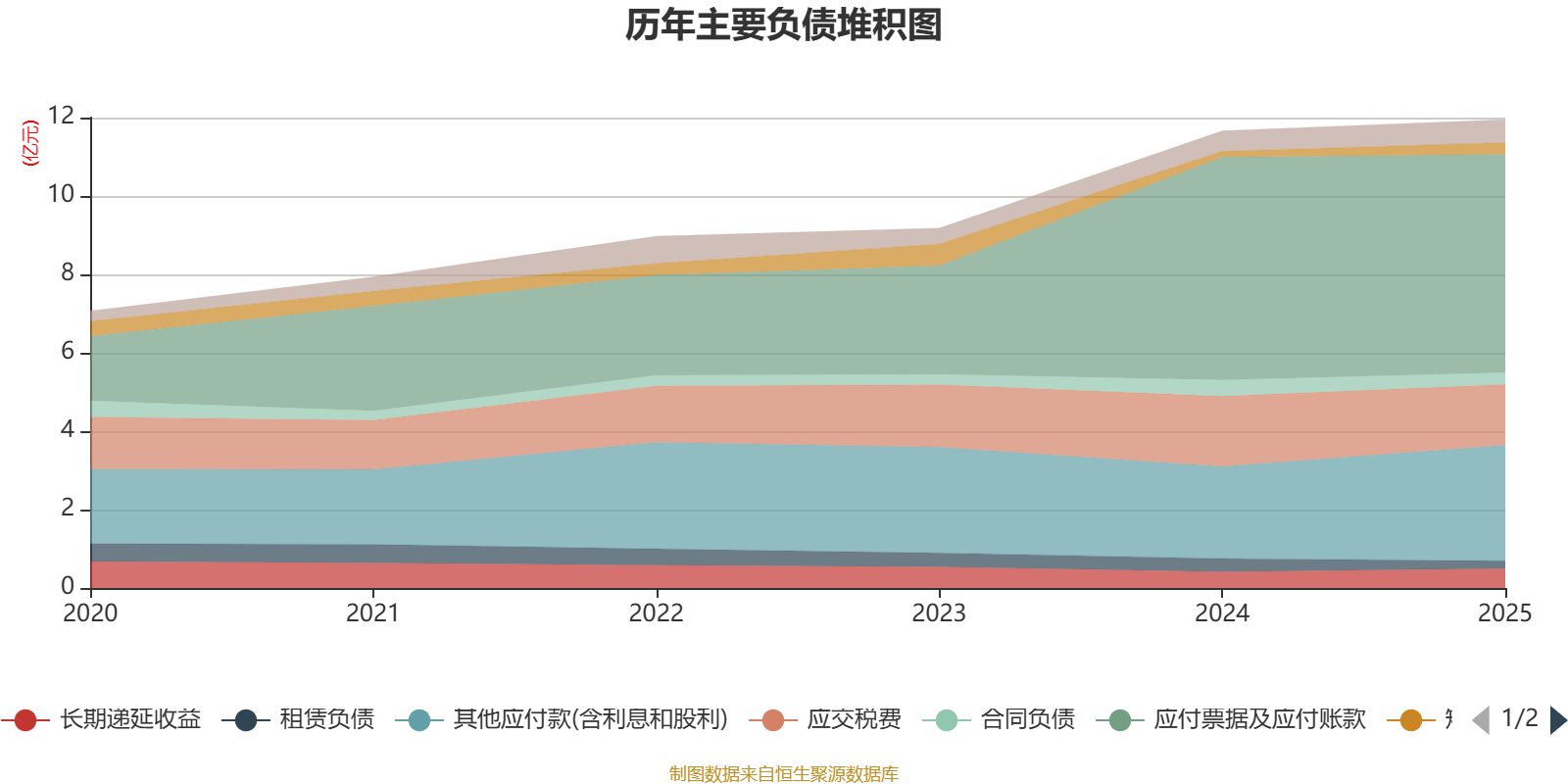负债重大变化方面,截至2025年末,公司应付票据及应付账款较上年末减少2.01%,占公司总资产比重下降0.7个百分点;应交税费较上年末减少13.58%,占公司总资产比重下降0.44个百分点;其他应付款(含利息和股利)较上年末增加25.78%,占公司总资产比重上升0.42个百分点;租赁负债较上年末减少41.85%,占公司总资产比重下降0.19个百分点。