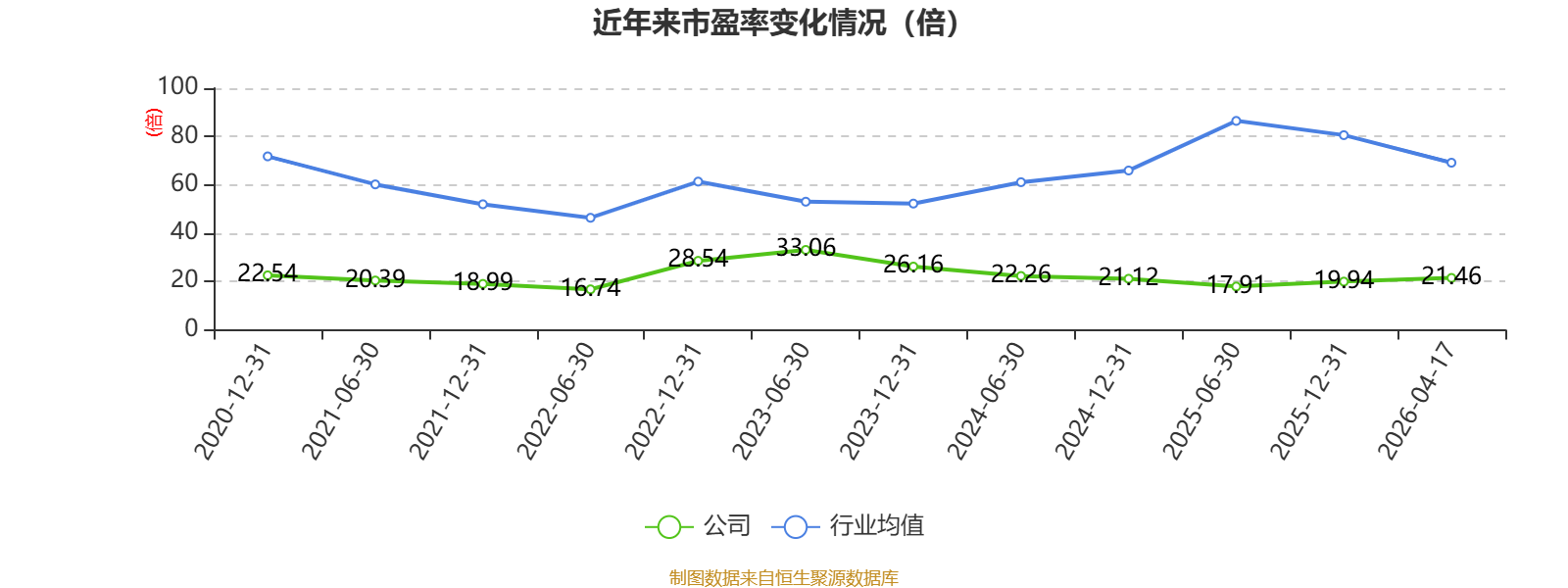 以4月17日收盘价计算,恩华药业目前市盈率(TTM)约为21.46倍,市净率(LF)约2.82倍,市销率(TTM)约3.84倍。