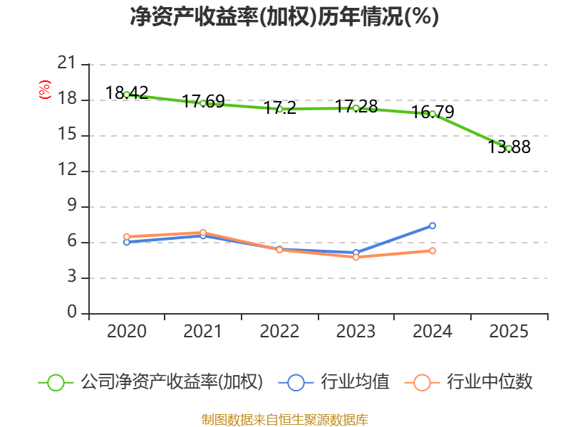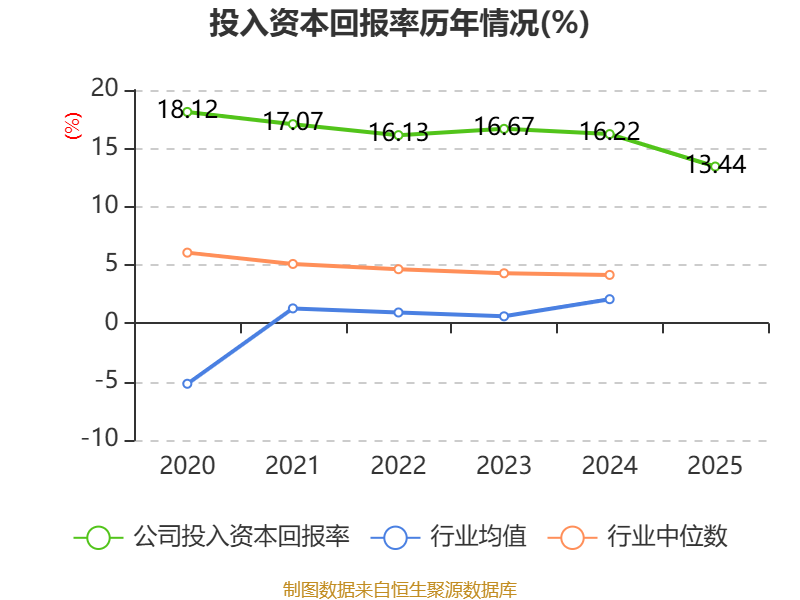 数据显示,2025年公司加权平均净资产收益率为13.88%,较上年同期下降2.91个百分点。公司2025年投入资本回报率为13.44%,较上年同期下降2.78个百分点。