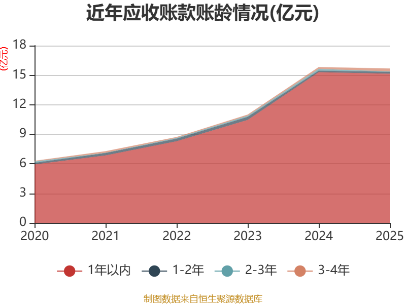 从应收账款账龄结构来看,截至2025年末,公司账龄在1年以内的应收账款余额为15.15亿元,较上年末下降1485.81万元,占应收账款总额比例为96.61%,较上年末下降0.12个百分点。