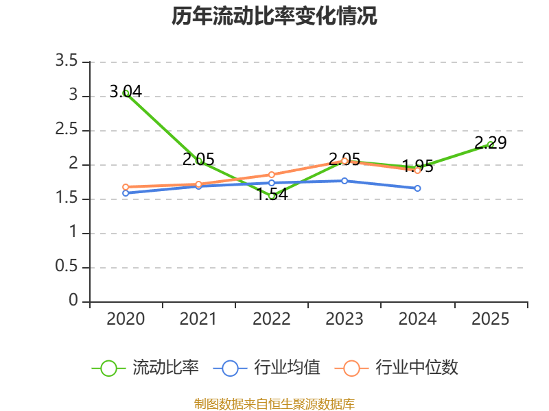 2025年,公司流动比率为2.29,速动比率为2.22。