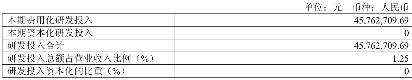 2025年全年,公司研发投入金额为4576.27万元,同比下降13.74%;研发投入占营业收入比例为1.25%,相比上年同期下降0.01个百分点。此外,公司全年研发投入资本化率为0%。