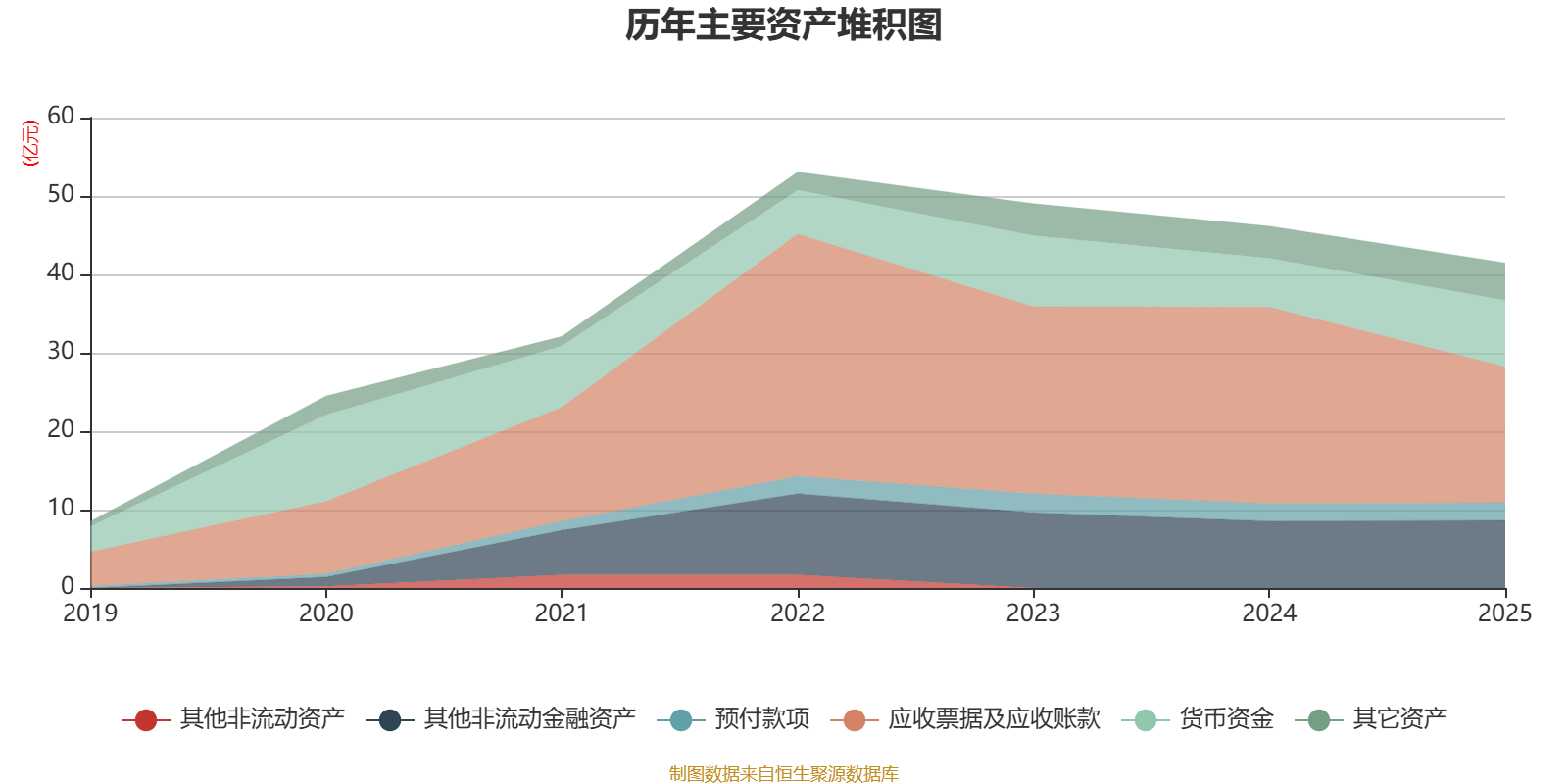 资产重大变化方面,截至2025年末,公司应收票据及应收账款较上年末减少30.66%,占公司总资产比重下降12.4个百分点;货币资金较上年末增加35.26%,占公司总资产比重上升6.83个百分点;其他非流动金融资产较上年末增加1.03%,占公司总资产比重上升2.29个百分点;其他应收款(含利息和股利)较上年末增加65.29%,占公司总资产比重上升1.07个百分点。