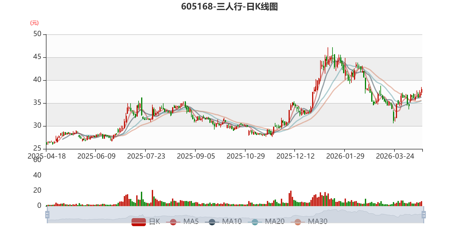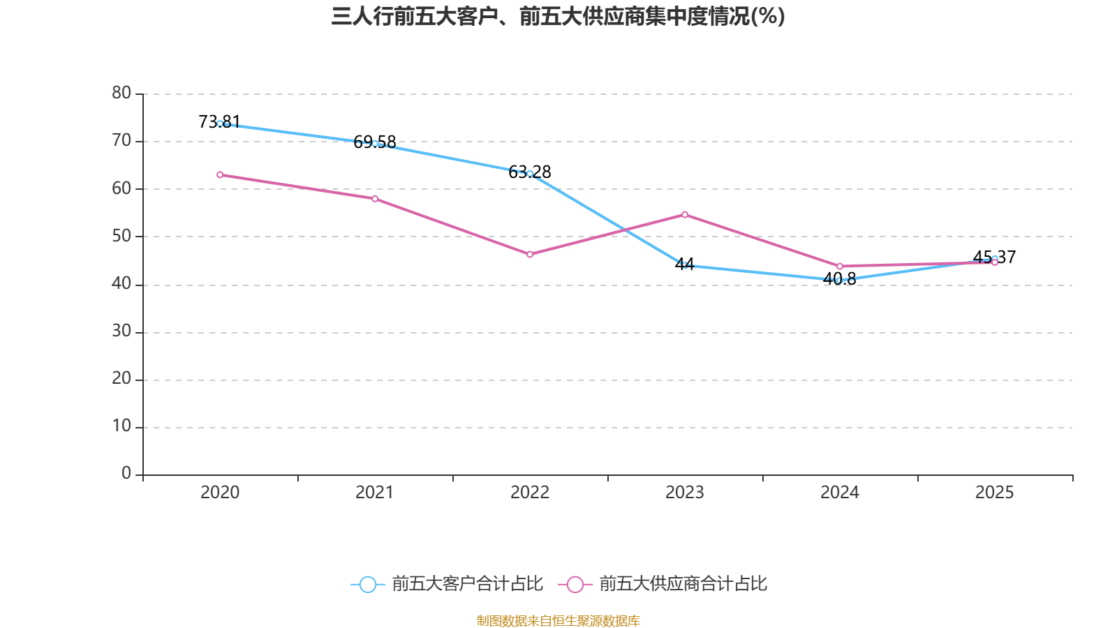 值得注意的是,中登公司数据显示,截至2026年4月10日,三人行15.18%股份处于质押状态。年报显示,第一大股东青岛多多行投资有限公司质押850万股公司股份,占其全部持股的15.12%;第三大股东泰安市众行投资合伙企业(有限合伙)质押655万股公司股份,占其全部持股的31.47%;第四大股东崔蕾质押335万股公司股份,占其全部持股的32.95%。