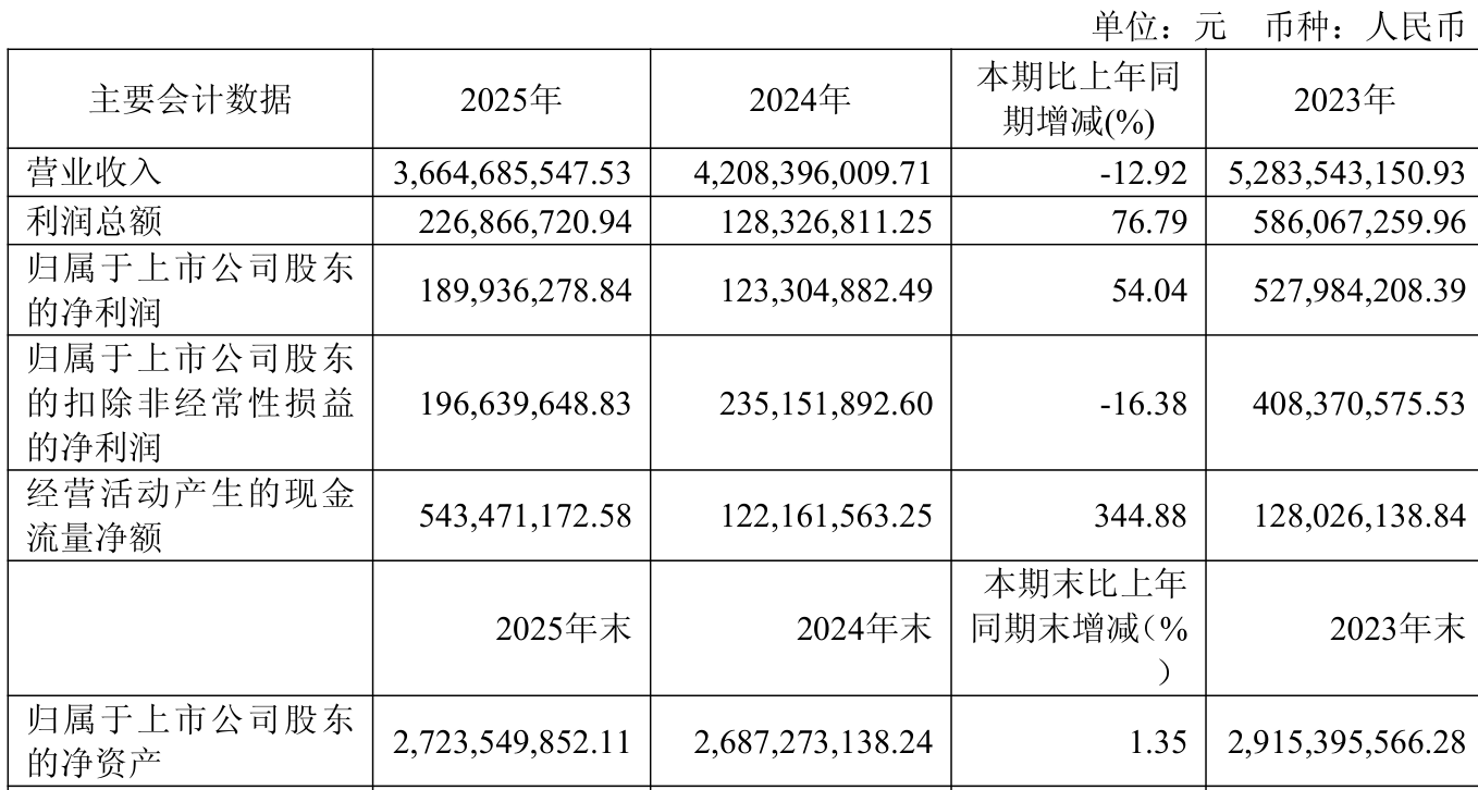 中证智能财讯三人行(605168)4月18日披露2025年年度报告。2025年,公司实现营业总收入36.65亿元,同比下降12.92%;归母净利润1.9亿元,同比增长54.04%;扣非净利润1.97亿元,同比下降16.38%;经营活动产生的现金流量净额为5.43亿元,同比增长344.88%;报告期内,三人行基本每股收益为0.9元,加权平均净资产收益率为7.05%。公司2025年度分配预案为:拟向全体股东每10股派现7.2元(含税)。
