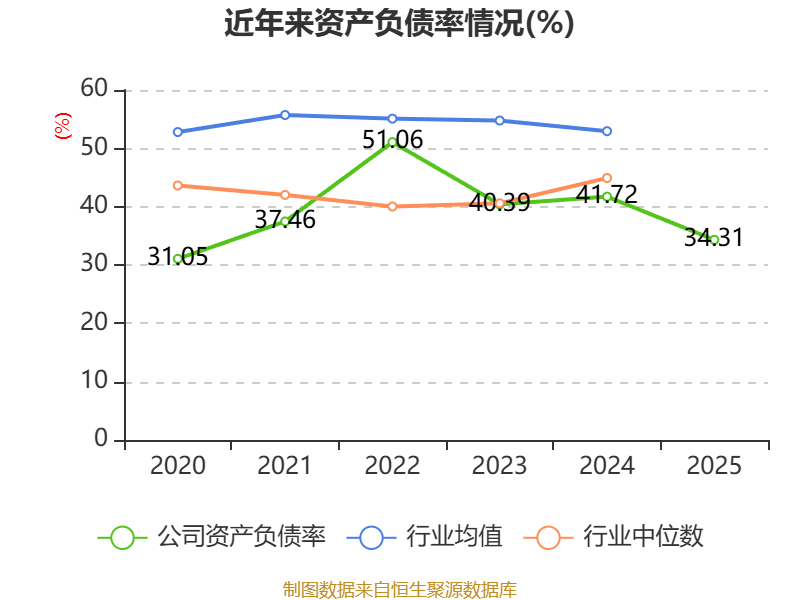 负债重大变化方面,截至2025年末,公司短期借款较上年末减少38.36%,占公司总资产比重下降4.37个百分点;长期借款较上年末减少100%,占公司总资产比重下降1.35个百分点;一年内到期的非流动负债较上年末减少78.06%,占公司总资产比重下降1.13个百分点;应付票据及应付账款较上年末减少14.96%,占公司总资产比重下降1.11个百分点。