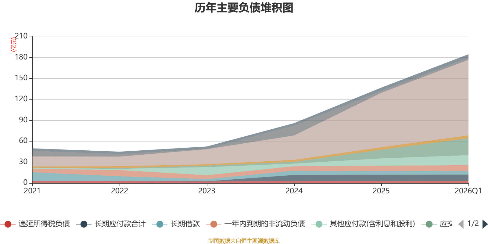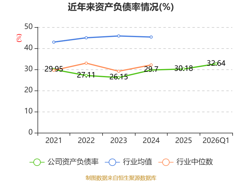 负债重大变化方面,截至2026年一季度末,公司应付票据及应付账款较上年末增加39.13%,占公司总资产比重上升1.96个百分点;应交税费较上年末增加93.46%,占公司总资产比重上升1.51个百分点;长期应付款合计较上年末减少0.43%,占公司总资产比重下降0.4个百分点;一年内到期的非流动负债较上年末增加3.26%,占公司总资产比重下降0.3个百分点。