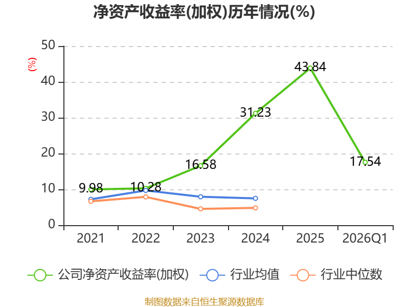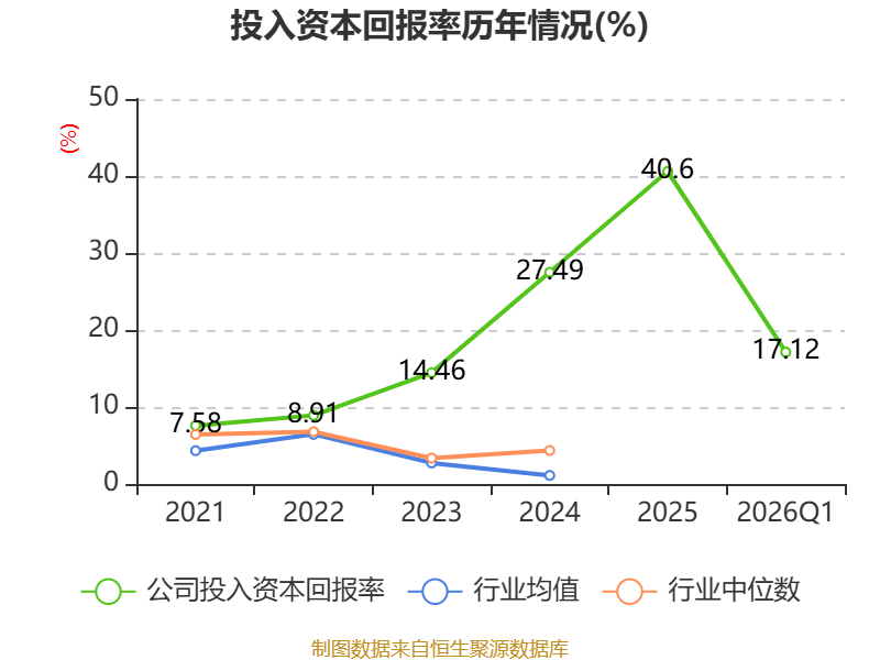 盈利能力方面, 2026年一季度公司加权平均净资产收益率为17.54%,同比上升9.6个百分点。公司2026年第一季度投入资本回报率为17.12%,较上年同期上升10.13个百分点。