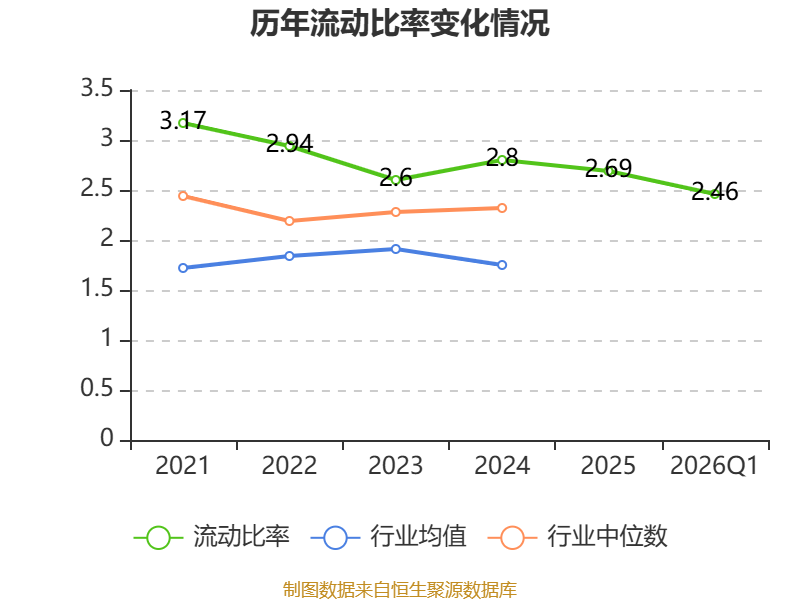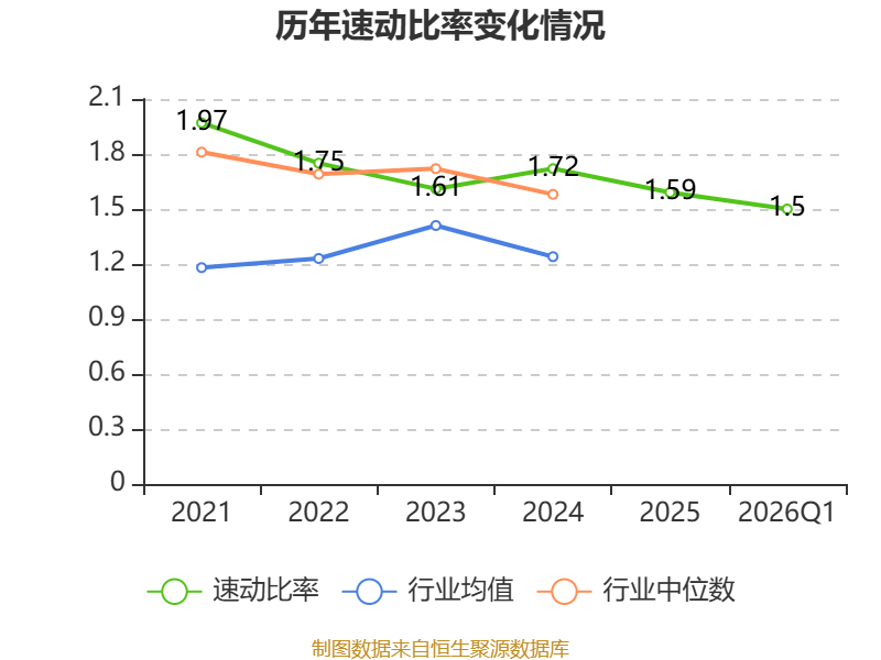 2026年第一季度,公司流动比率为2.46,速动比率为1.5。