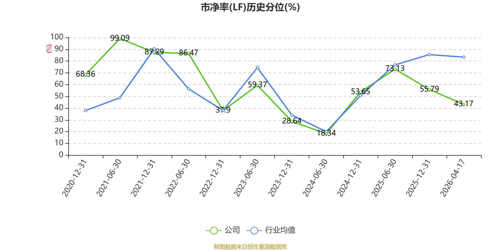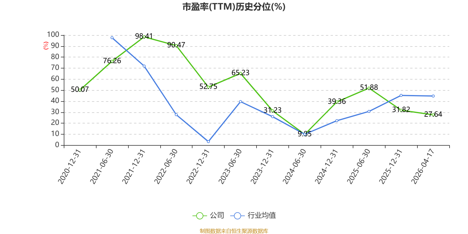 市盈率、市净率为负时,不显示当期分位数,会导致折线图中断。