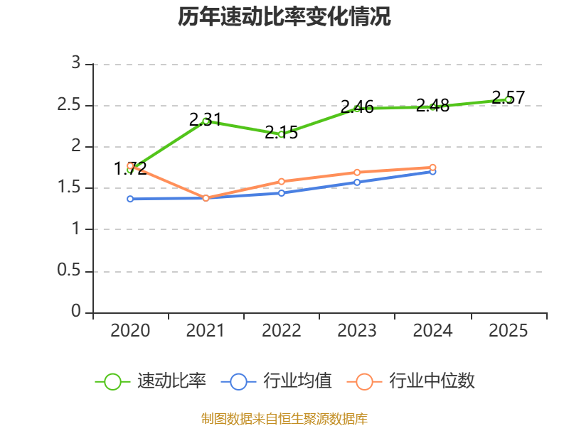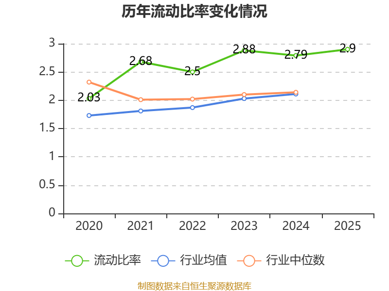 2025年,公司流动比率为2.9,速动比率为2.57。