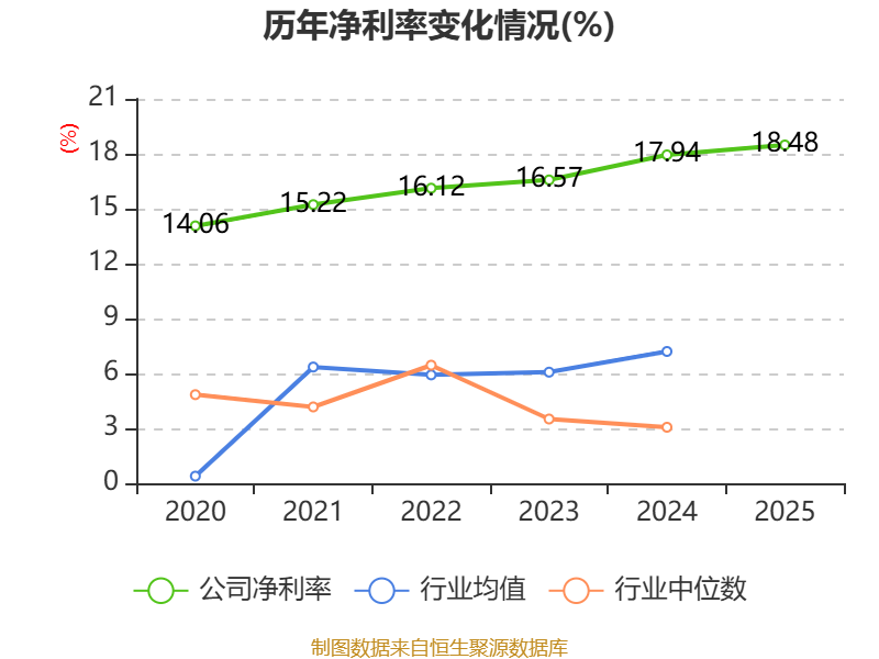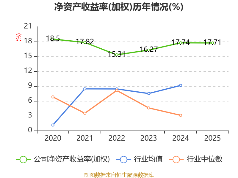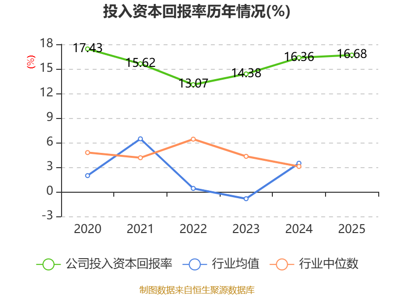 数据显示,2025年公司加权平均净资产收益率为17.71%,较上年同期下降0.03个百分点。公司2025年投入资本回报率为16.68%,较上年同期上升0.32个百分点。