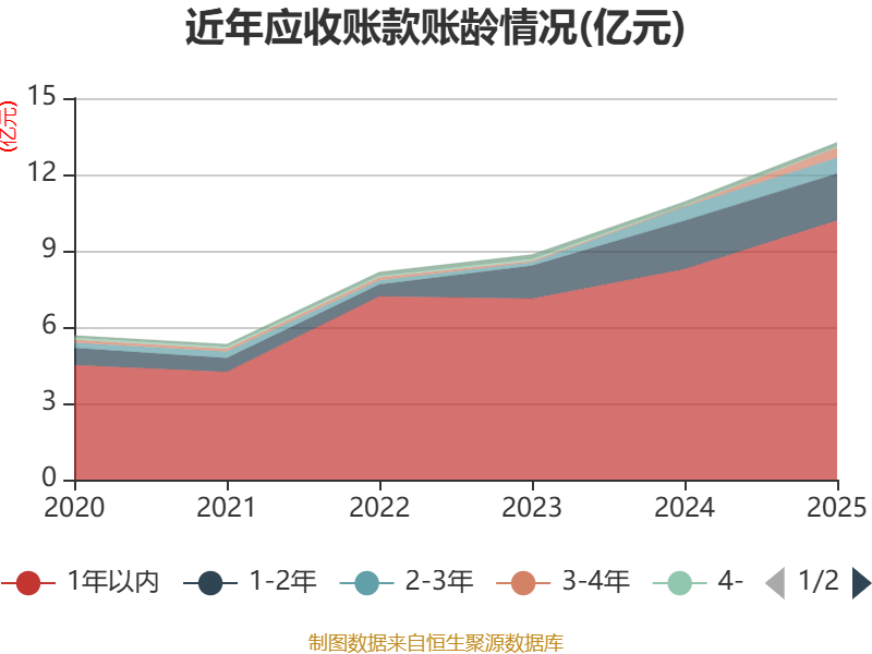 从应收账款账龄结构来看,截至2025年末,公司账龄在1年以内的应收账款余额为10.19亿元,较上年末增长1.92亿元,占应收账款总额比例为76.88%,较上年末上升1.2个百分点。