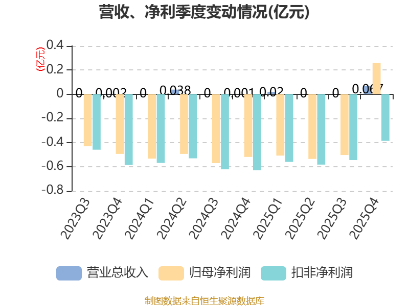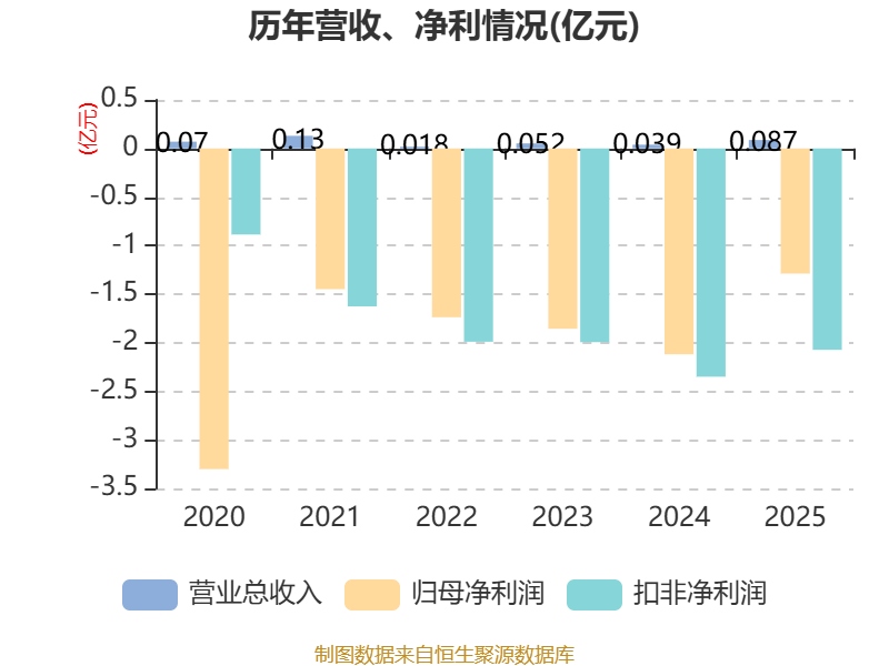 中证智能财讯首药控股(688197)4月18日披露2025年年度报告。2025年,公司实现营业总收入866.76万元,同比增长119.88%;归母净利润亏损1.29亿元,上年同期亏损2.12亿元;扣非净利润亏损2.07亿元,上年同期亏损2.35亿元;经营活动产生的现金流量净额为-1.58亿元,上年同期为-1.97亿元;报告期内,首药控股基本每股收益为-0.87元,加权平均净资产收益率为-17.30%。