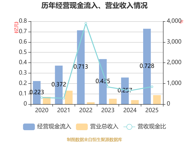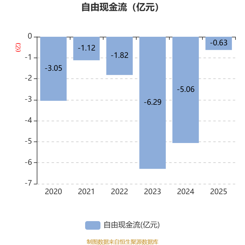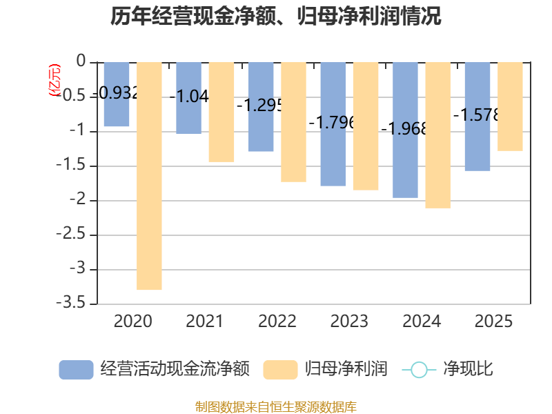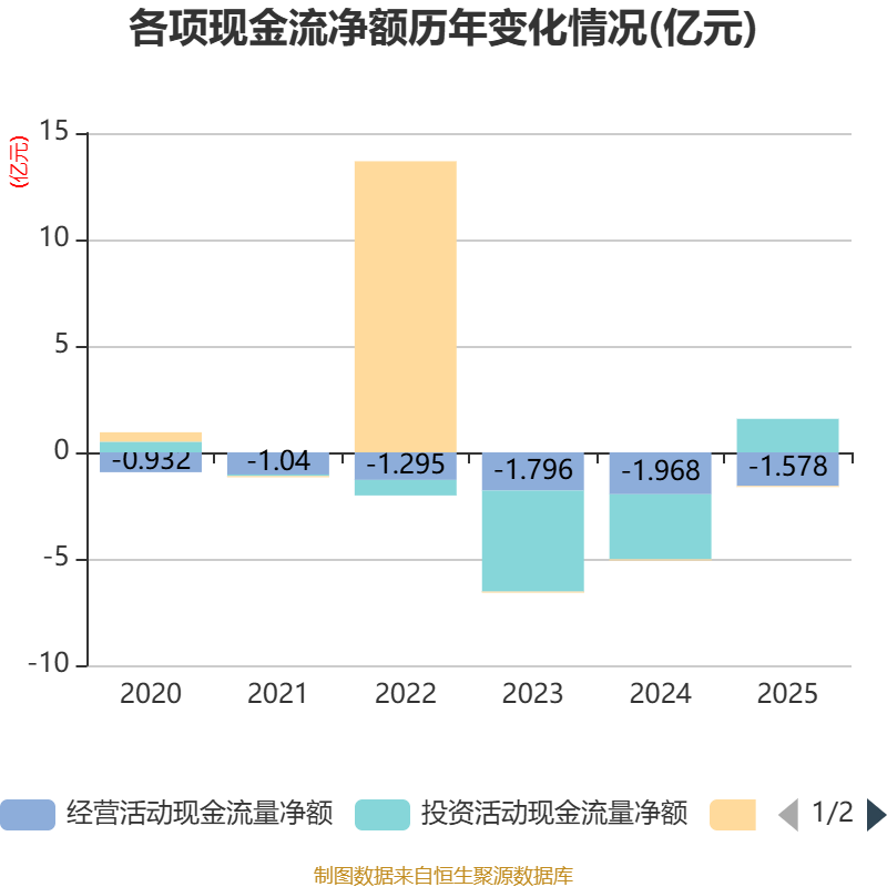 截至2025年,公司经营活动现金流净额为-1.58亿元,同比增加3893.76万元;筹资活动现金流净额-479.34万元,同比增加46.46万元;投资活动现金流净额1.57亿元,上年同期为-3.06亿元。