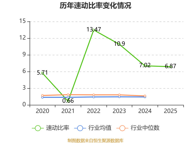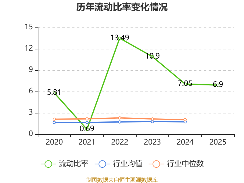 2025年,公司流动比率为6.9,速动比率为6.87。