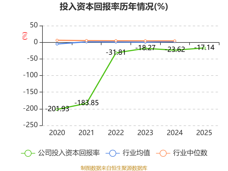 数据显示,2025年公司加权平均净资产收益率为-17.3%,较上年同期上升5.86个百分点。公司2025年投入资本回报率为-17.14%,较上年同期上升6.48个百分点。
