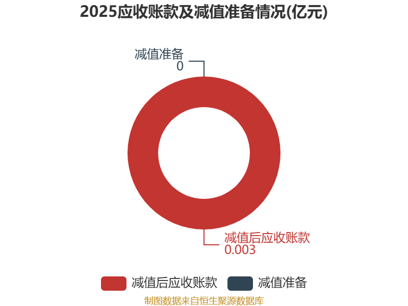 从应收账款账龄结构来看,截至2025年末,公司账龄在1年以内的应收账款余额为0亿元,较上年末增长25.32万元,占应收账款总额比例为100%,与上年持平。