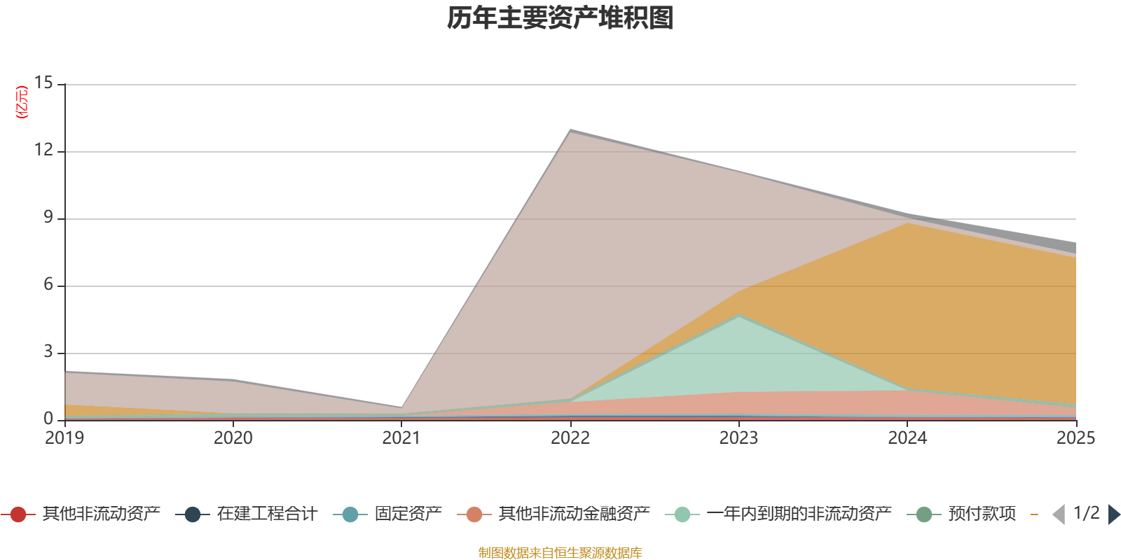 资产重大变化方面,截至2025年末,公司其他非流动金融资产较上年末减少71.32%,占公司总资产比重下降7.8个百分点;使用权资产较上年末增加399.44%,占公司总资产比重上升3.03个百分点;交易性金融资产合计较上年末减少11.28%,占公司总资产比重上升2.73个百分点;其他流动资产较上年末增加143.51%,占公司总资产比重上升1.04个百分点。