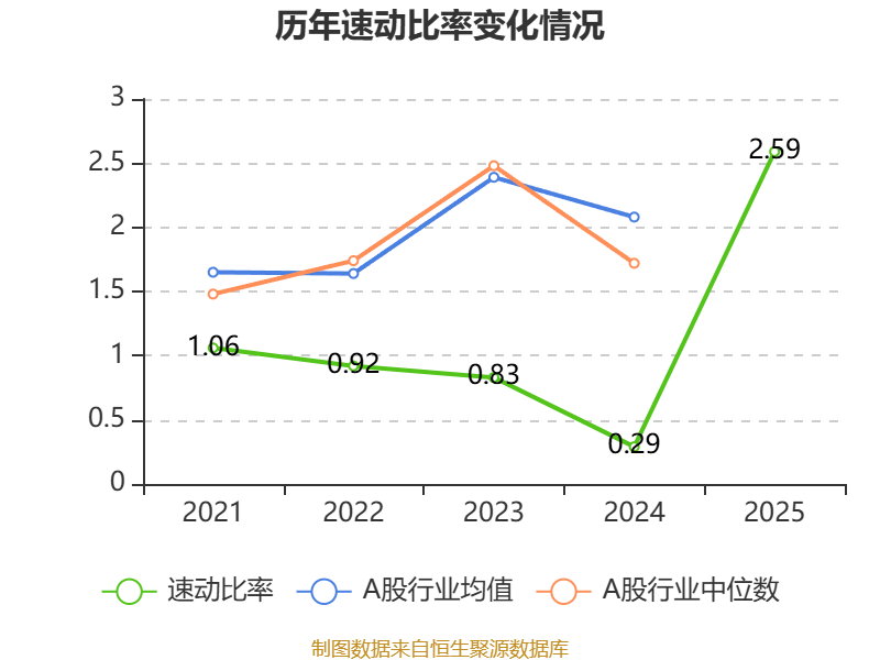 2025年,公司流动比率为2.85,速动比率为2.59。