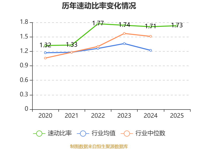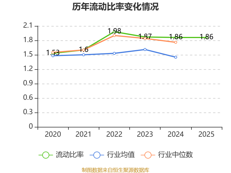 2025年,公司流动比率为1.86,速动比率为1.73。