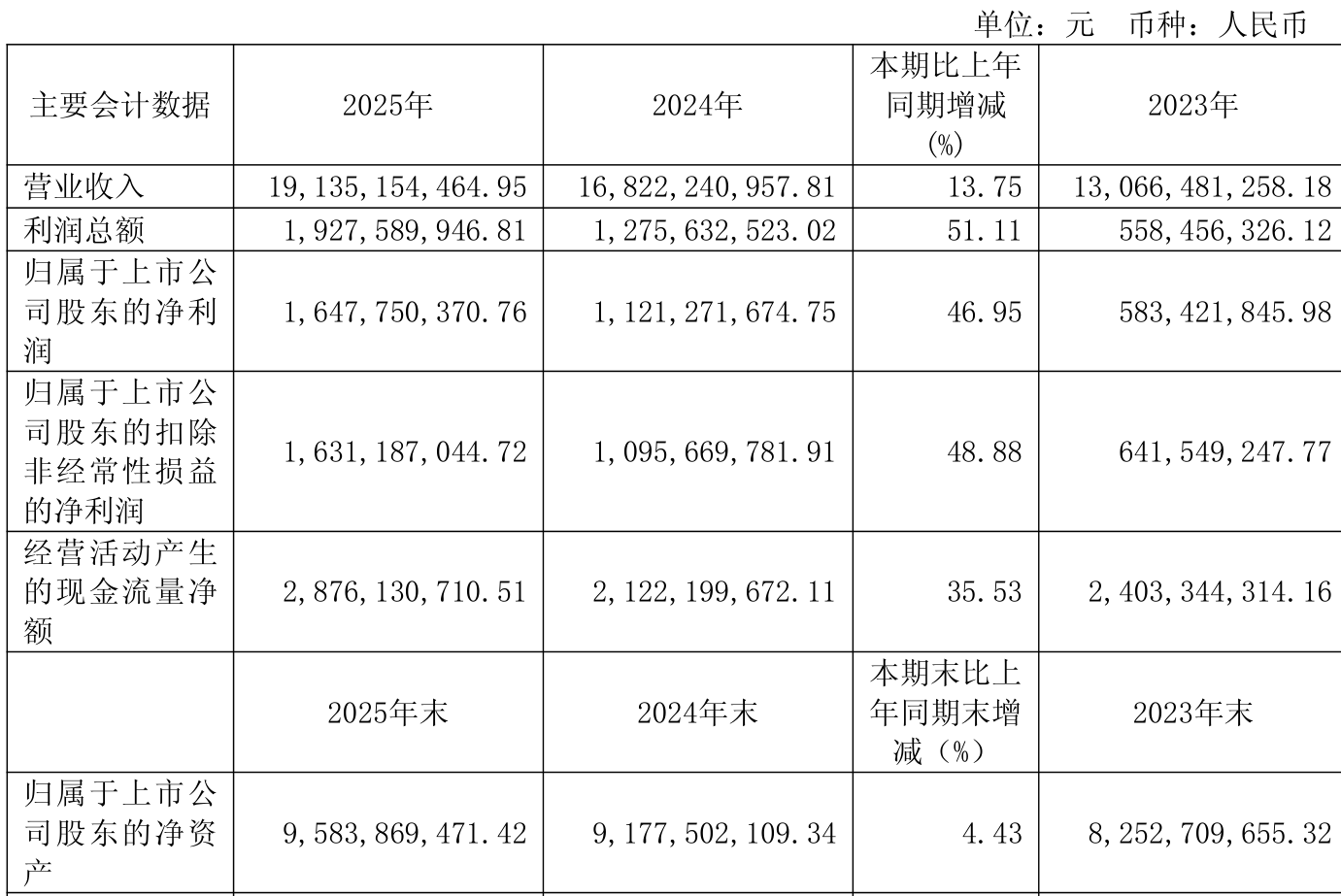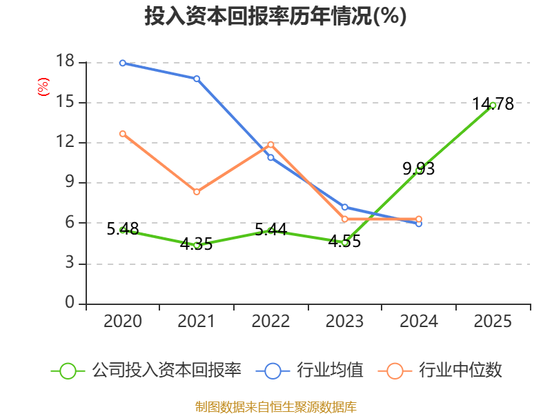 数据显示,2025年公司加权平均净资产收益率为17.5%,较上年同期上升4.61个百分点。公司2025年投入资本回报率为14.78%,较上年同期上升4.85个百分点。