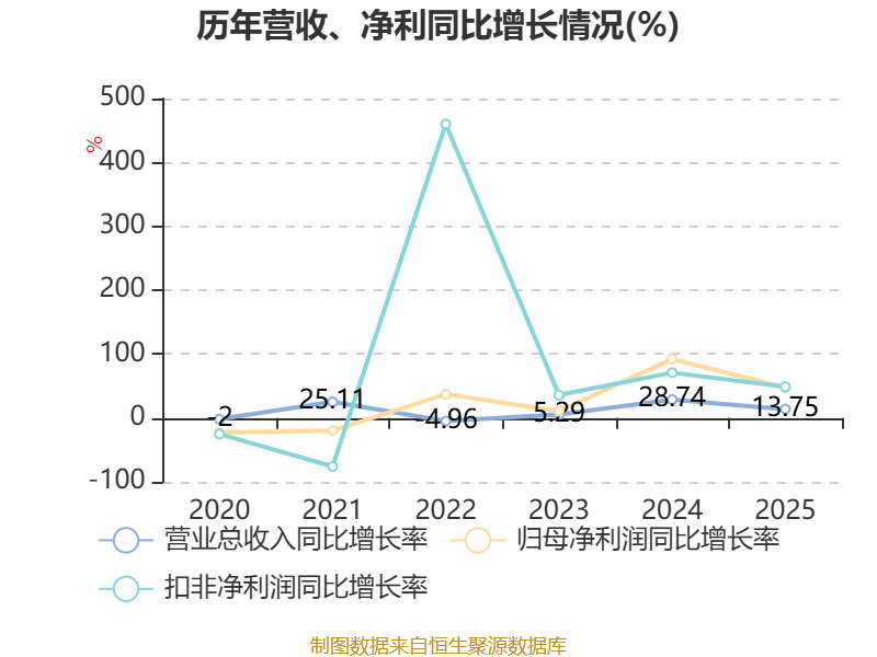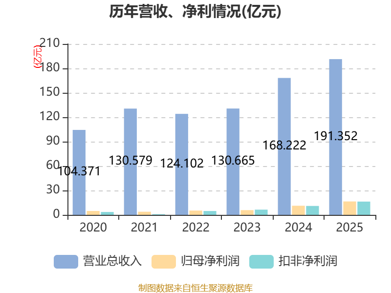 中证智能财讯隆鑫通用(603766)4月18日披露2025年年度报告。2025年,公司实现营业总收入191.35亿元,同比增长13.75%;归母净利润16.48亿元,同比增长46.95%;扣非净利润16.31亿元,同比增长48.88%;经营活动产生的现金流量净额为28.76亿元,同比增长35.53%;报告期内,隆鑫通用基本每股收益为0.8元,加权平均净资产收益率为17.50%。公司2025年度分配预案为:拟向全体股东每10股派现5元(含税)。