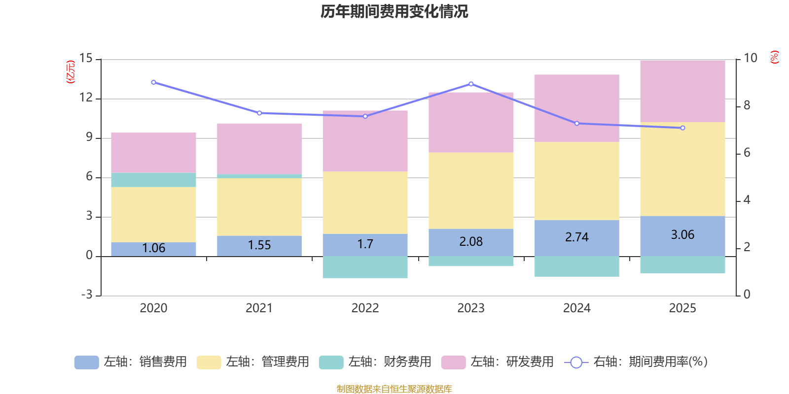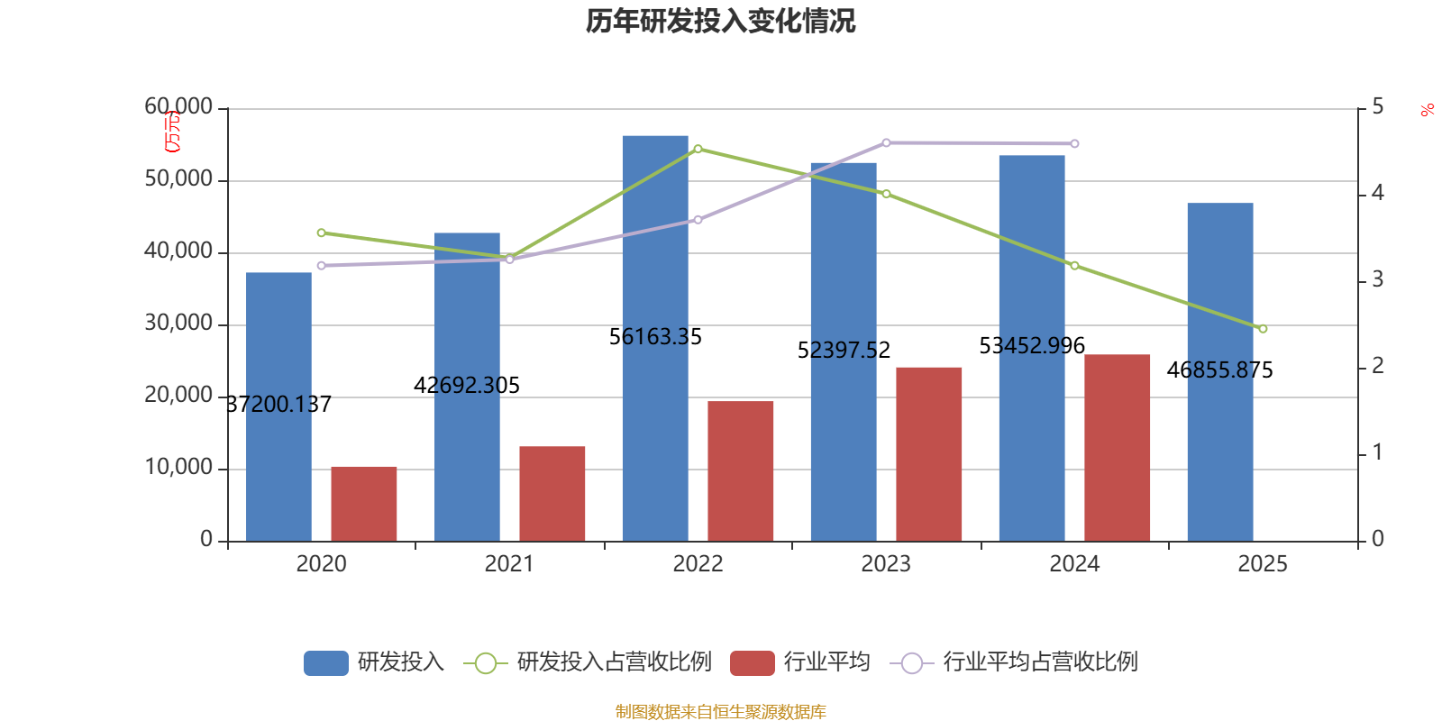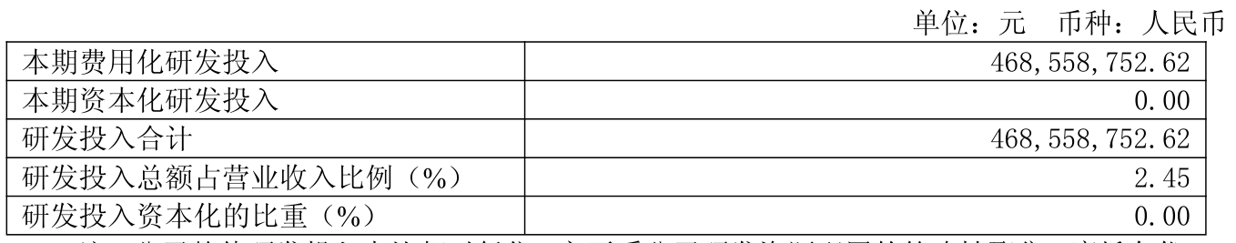 2025年全年,公司研发投入金额为4.69亿元,同比下降12.34%;研发投入占营业收入比例为2.45%,相比上年同期下降0.73个百分点。此外,公司全年研发投入资本化率为0%。