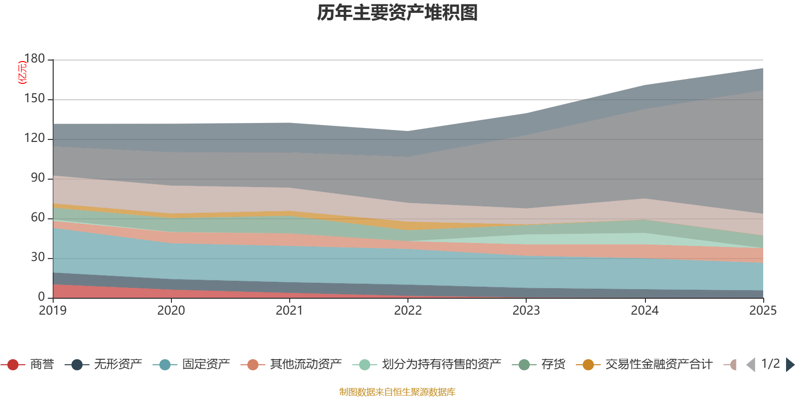 资产重大变化方面,截至2025年末,公司货币资金较上年末增加38.05%,占公司总资产比重上升11.75个百分点;划分为持有待售的资产较上年末减少100%,占公司总资产比重下降5.35个百分点;固定资产较上年末减少11.18%,占公司总资产比重下降2.58个百分点;无形资产较上年末减少13.57%,占公司总资产比重下降0.79个百分点。