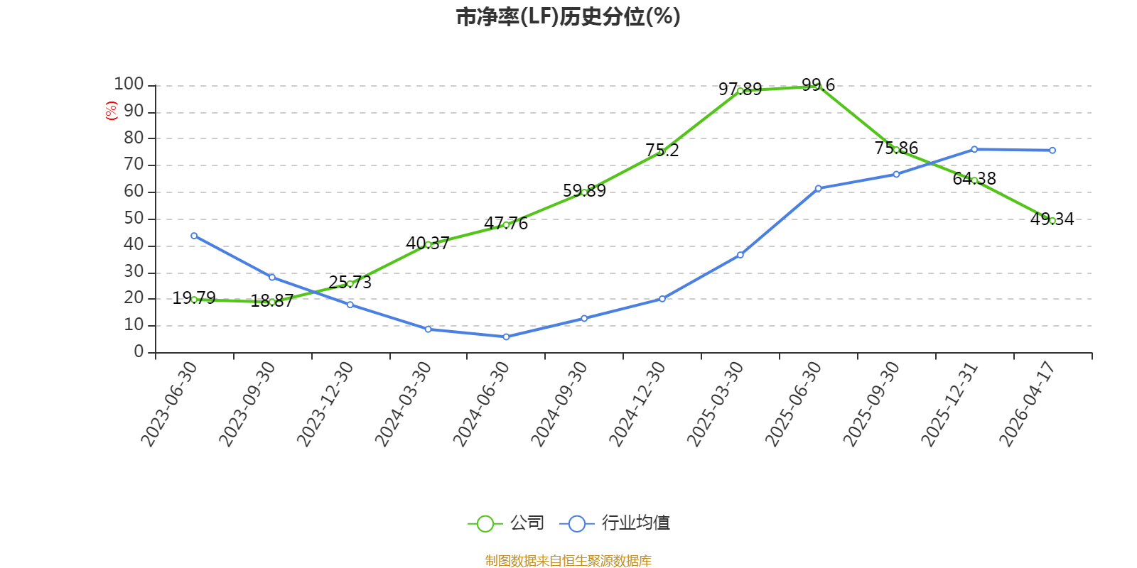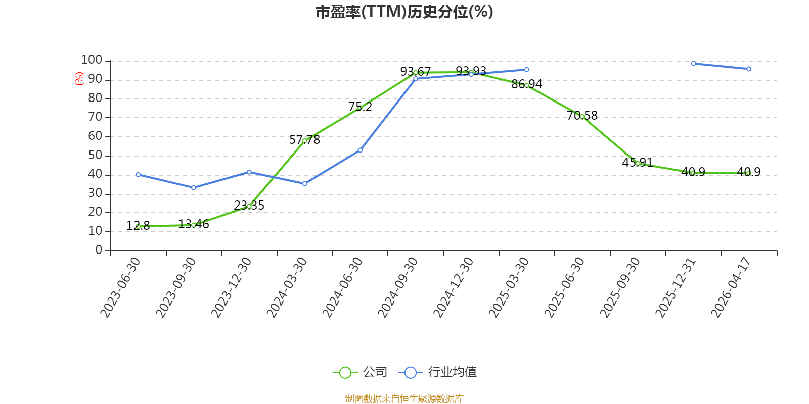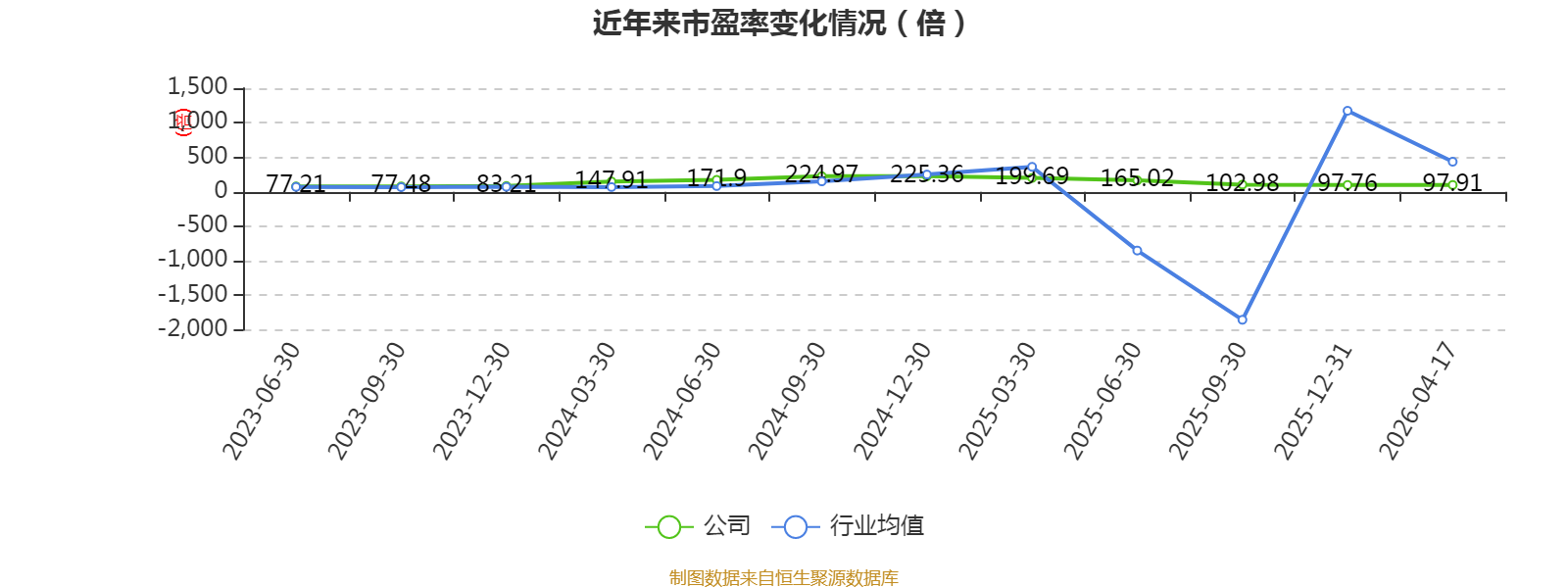 市盈率、市净率为负时,不显示当期分位数,会导致折线图中断。