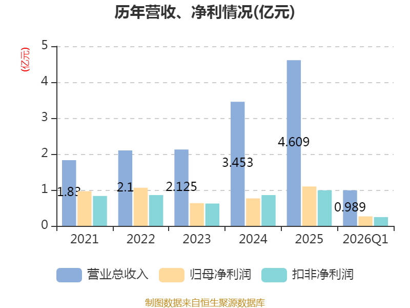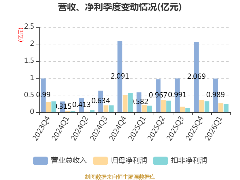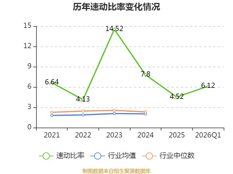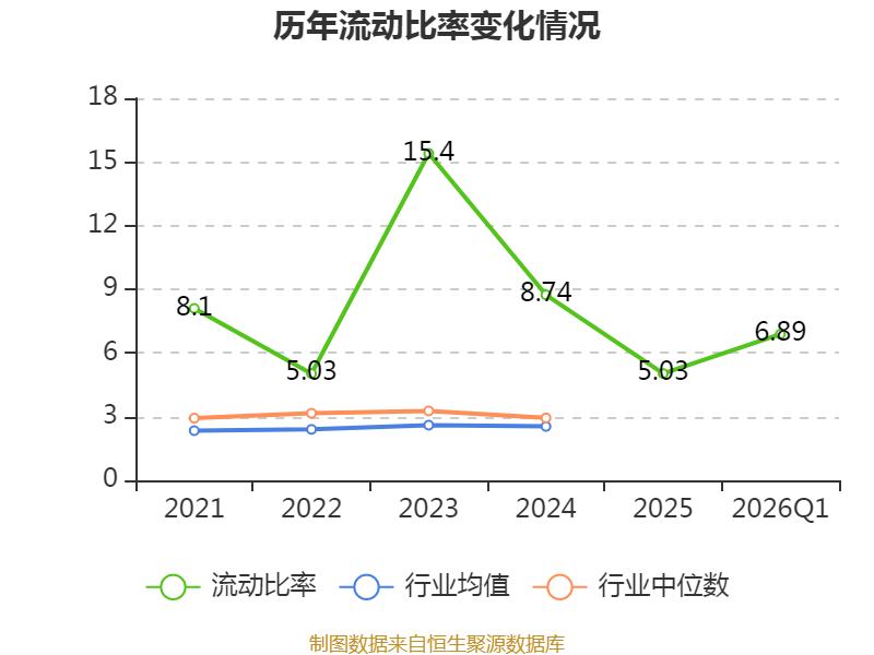 2026年第一季度,公司流动比率为6.89,速动比率为6.12。