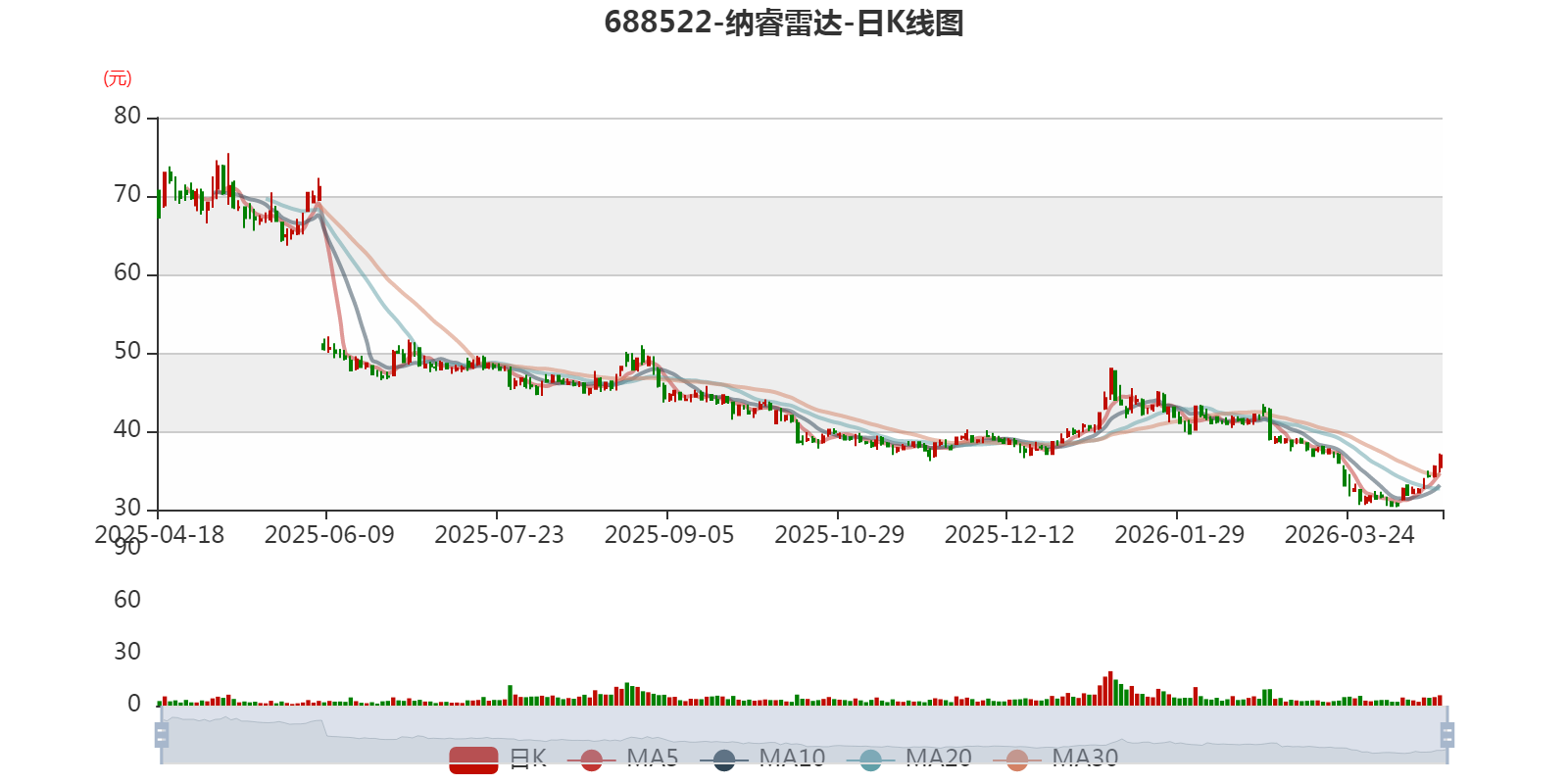 以4月17日收盘价计算,纳睿雷达目前市盈率(TTM)约为97.91倍,市净率(LF)约4.78倍,市销率(TTM)约22.29倍。