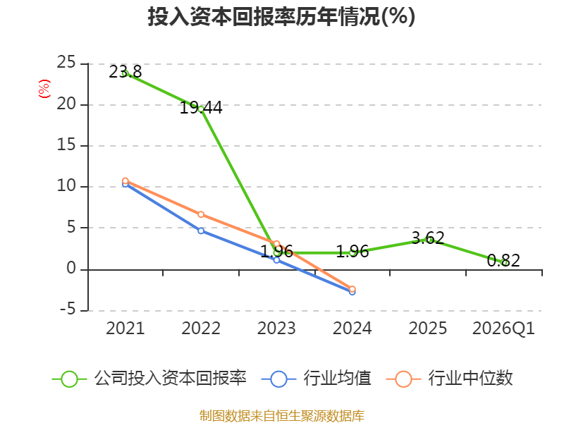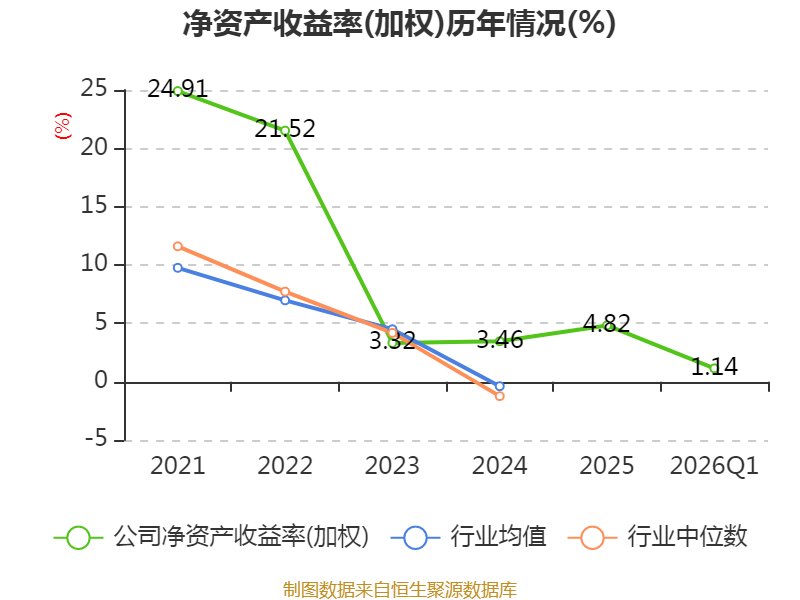 盈利能力方面, 2026年一季度公司加权平均净资产收益率为1.14%,同比上升0.18个百分点。公司2026年第一季度投入资本回报率为0.82%,较上年同期上升0.19个百分点。