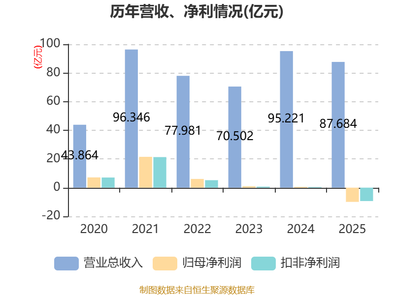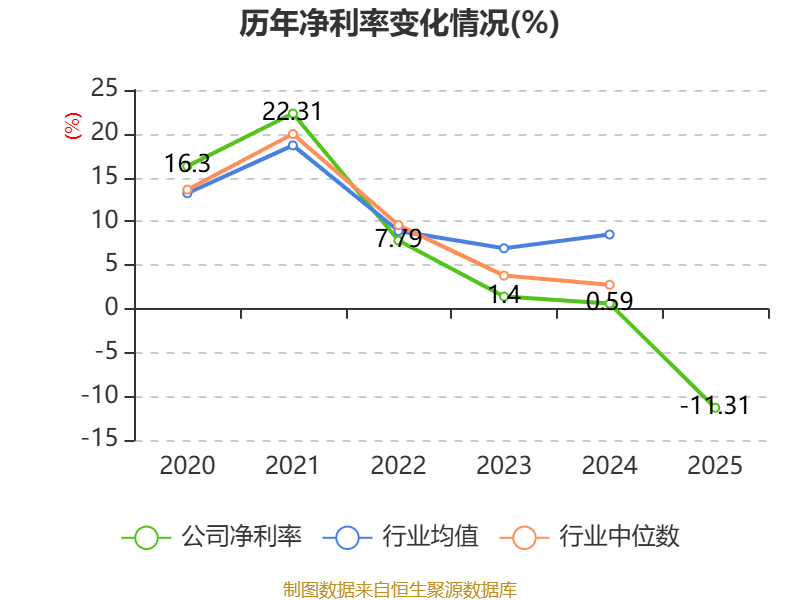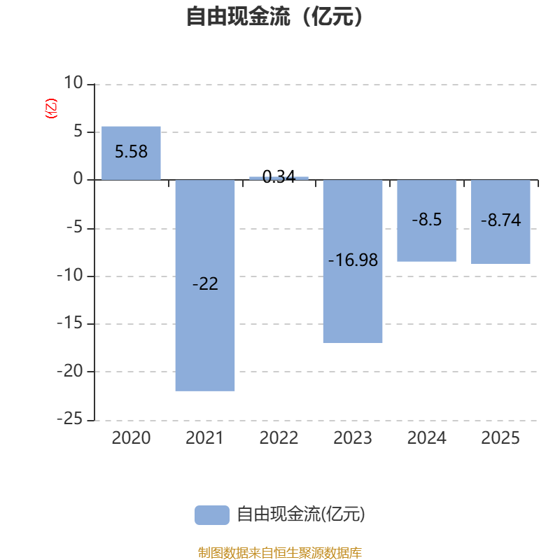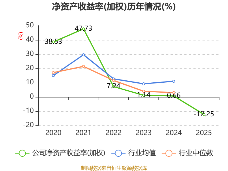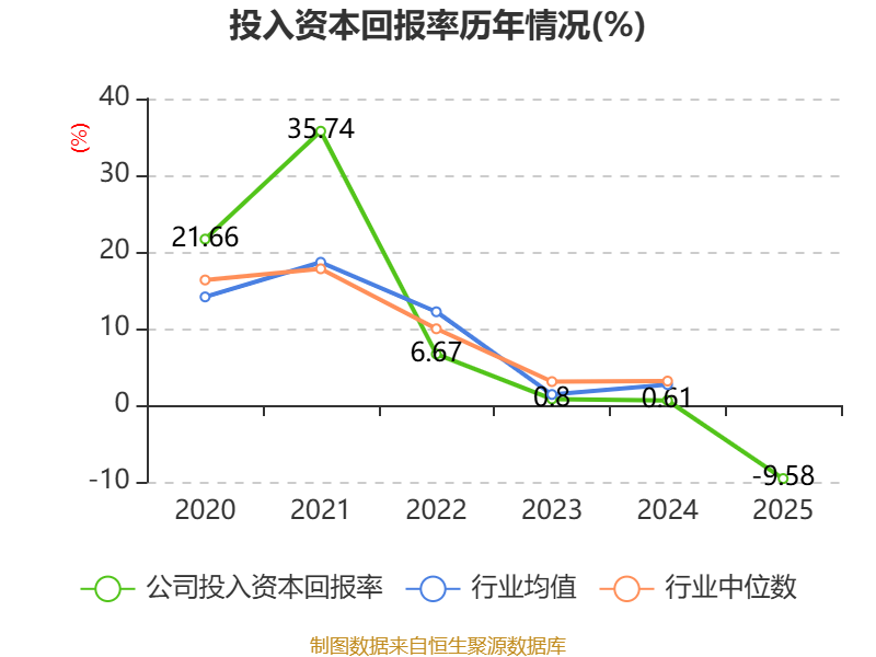 数据显示,2025年公司加权平均净资产收益率为-12.25%,较上年同期下降12.91个百分点。公司2025年投入资本回报率为-9.58%,较上年同期下降10.19个百分点。