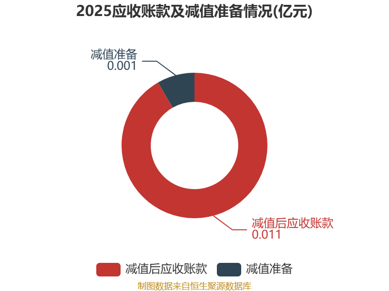 从应收账款账龄结构来看,截至2025年末,公司账龄在1年以内的应收账款余额为0.01亿元,较上年末增长109.62万元。