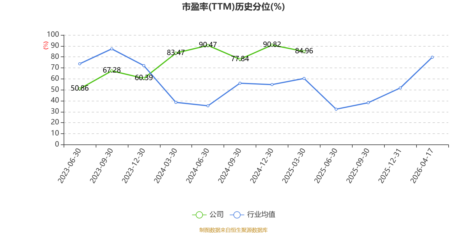 市盈率、市净率为负时,不显示当期分位数,会导致折线图中断。