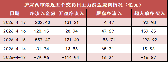 今日沪深两市主力资金开盘净流出131.21亿元,尾盘净流出4.47亿元,全天净流出232.43亿元。