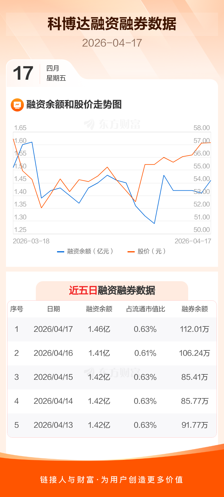 交易所最新数据显示,科博达于2026年4月17日获融资买入1563.91万元,融资偿还1091.52万元,当日融资净买入472.39万元。目前,该股融资余额1.46亿,占流通市值比例为0.63%。