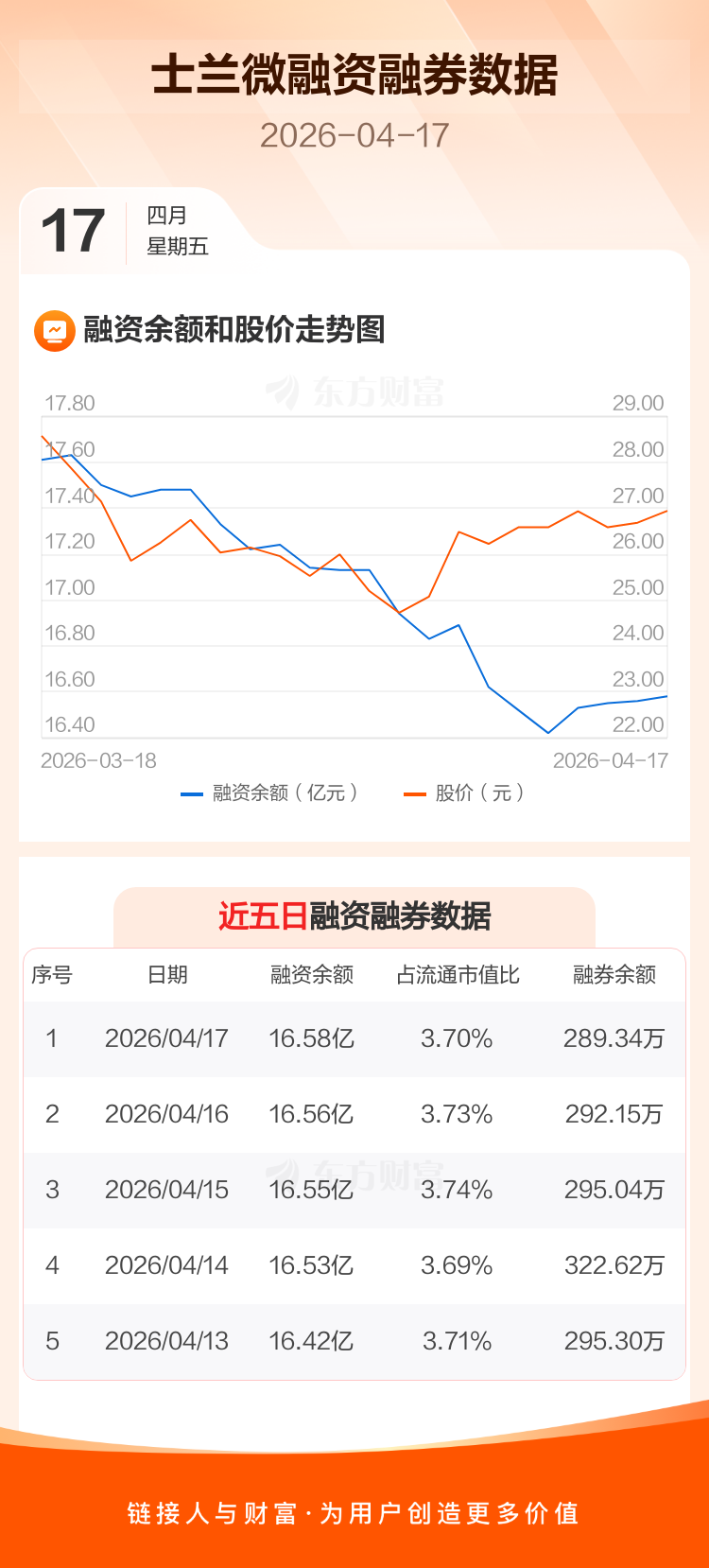 交易所最新数据显示,士兰微于2026年4月17日获融资买入6447.06万元,融资偿还6264.91万元,当日融资净买入182.15万元。目前,该股融资余额16.58亿,占流通市值比例为3.70%。