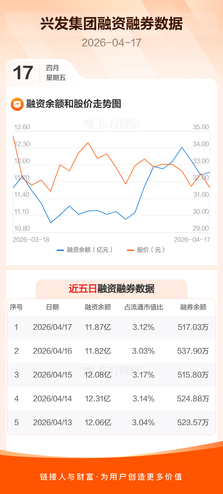 交易所最新数据显示,兴发集团于2026年4月17日获融资买入8172.08万元,融资偿还7669.20万元,当日融资净买入502.88万元。目前,该股融资余额11.87亿,占流通市值比例为3.12%。