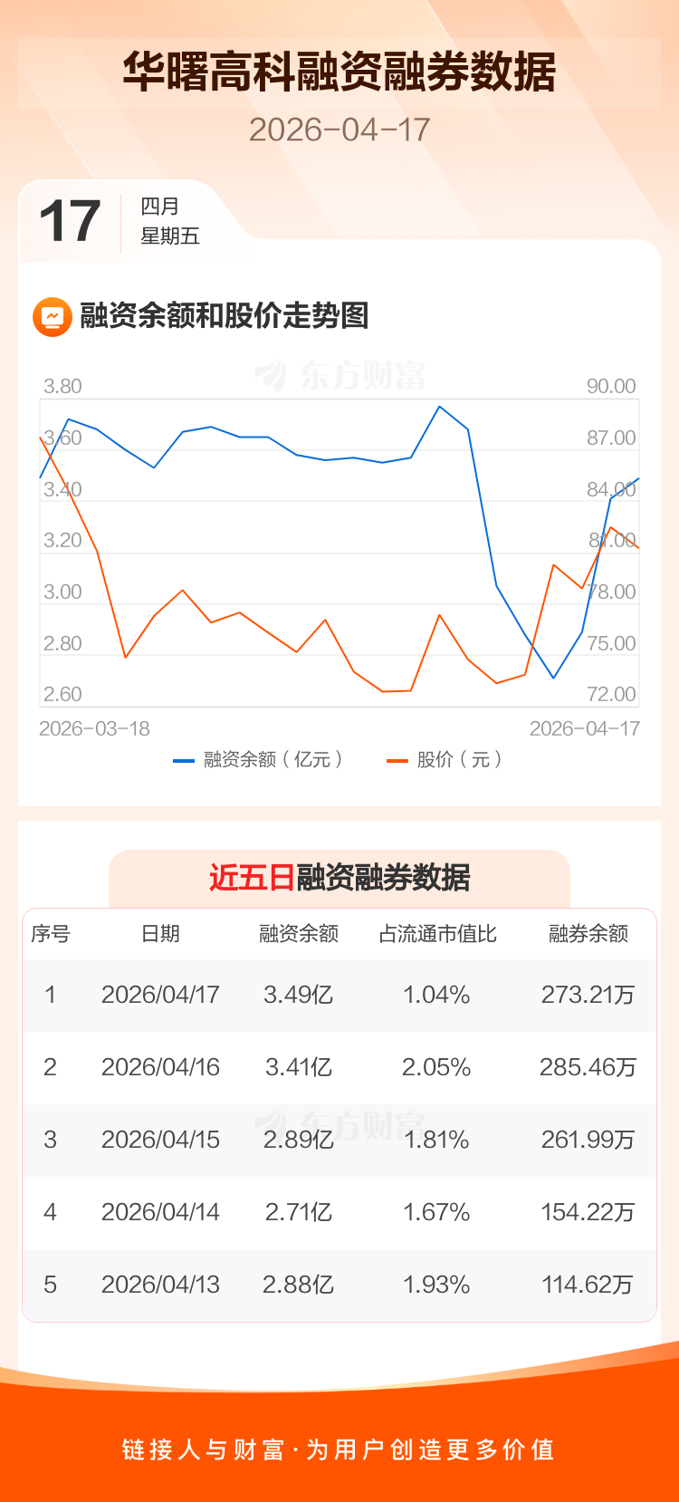 交易所最新数据显示,华曙高科于2026年4月17日获融资买入4520.02万元,融资偿还3725.34万元,当日融资净买入794.69万元。目前,该股融资余额3.49亿,占流通市值比例为1.04%。
